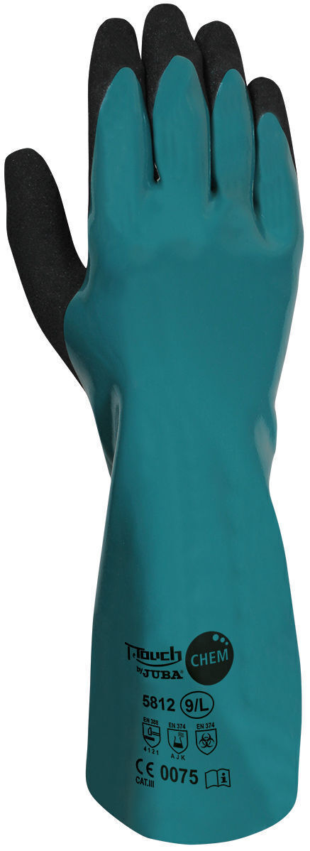 Gants avec double enduction nitrile sur support nylon. 1ère enduction nitrile étanche et 2ème enduction bi-polymère (nitrile + PU base aqueuse) avec technologie T-Touch sur la paume. Longueur : 35 cm. Épaisseur : 1,20/1,30 mm.