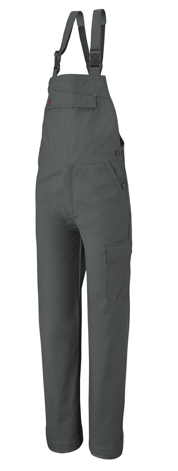Cotte à bretelles. Bretelles avec boucles clic-clac. Fermeture devant à glissière bord à bord. 2 poches poitrine plaquées fermées par auto-agrippants. 2 poches italiennes. Poche cuisse à soufflet, rabat et surpoche smartphone. Double poche mètre. Poche revolver à l'arrière. Mercerie tout plastique. E.J. : 82 cm (+ 5 cm).