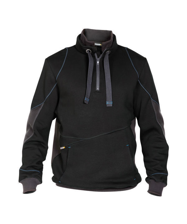Sweat-Shirt zippé devant, avec protection du menton. Poche kangourou avec des renforcements Cordura® aux manches. Coudes renforcés en Cordura®. Poche de sécurité cachée avec fermeture à glissière. Poignets et taille en tricot. Col avec cordon de serrage. Poche kangourou. Surpiqûres contrastées, idéal pour broderie et sérigraphie. Coutures renforcées aux manches.