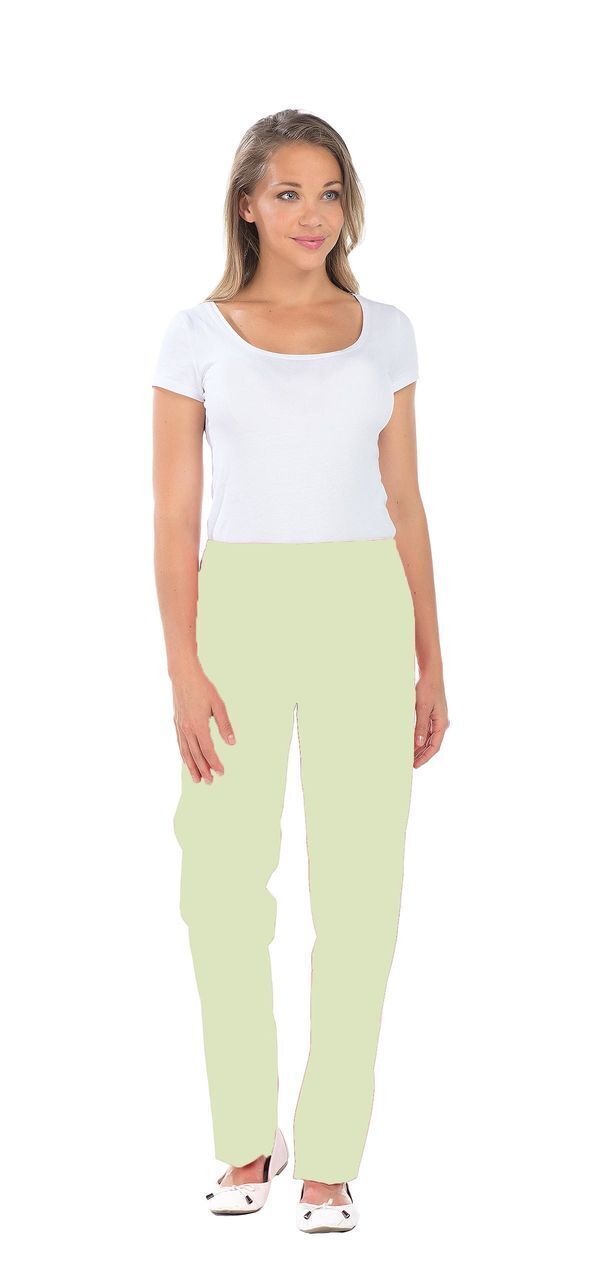 Pantalon femme. Taille semi-élastiquée effet ventre plat. 2 poches italiennes. E.J. : 82 cm.