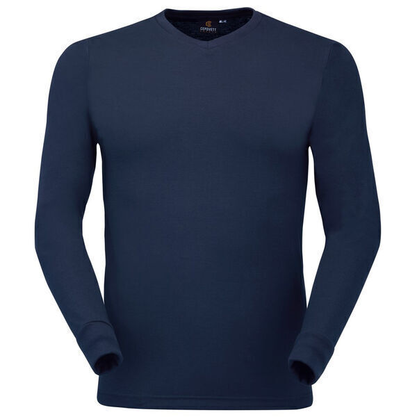 T-shirt à col V en bord-côte. Manches longues et poignets en bord-côte. Finition bas de t-shirt surpiqué.